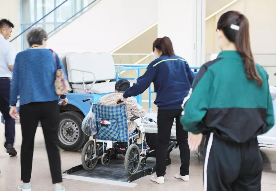 義診現(xiàn)場有位96歲的老人,因下肢水腫在家屬陪同下來院咨詢,心臟內科李艷副主任醫(yī)師接待患者并悉心解答問題。因患者乘坐輪椅行動不便,我院為其提供了“招手?!彪娖寇嚪?電瓶車的升降臺為患者上下車提供很大便利。家屬表示“很貼心,從來沒有在醫(yī)院見過這樣的服務!”