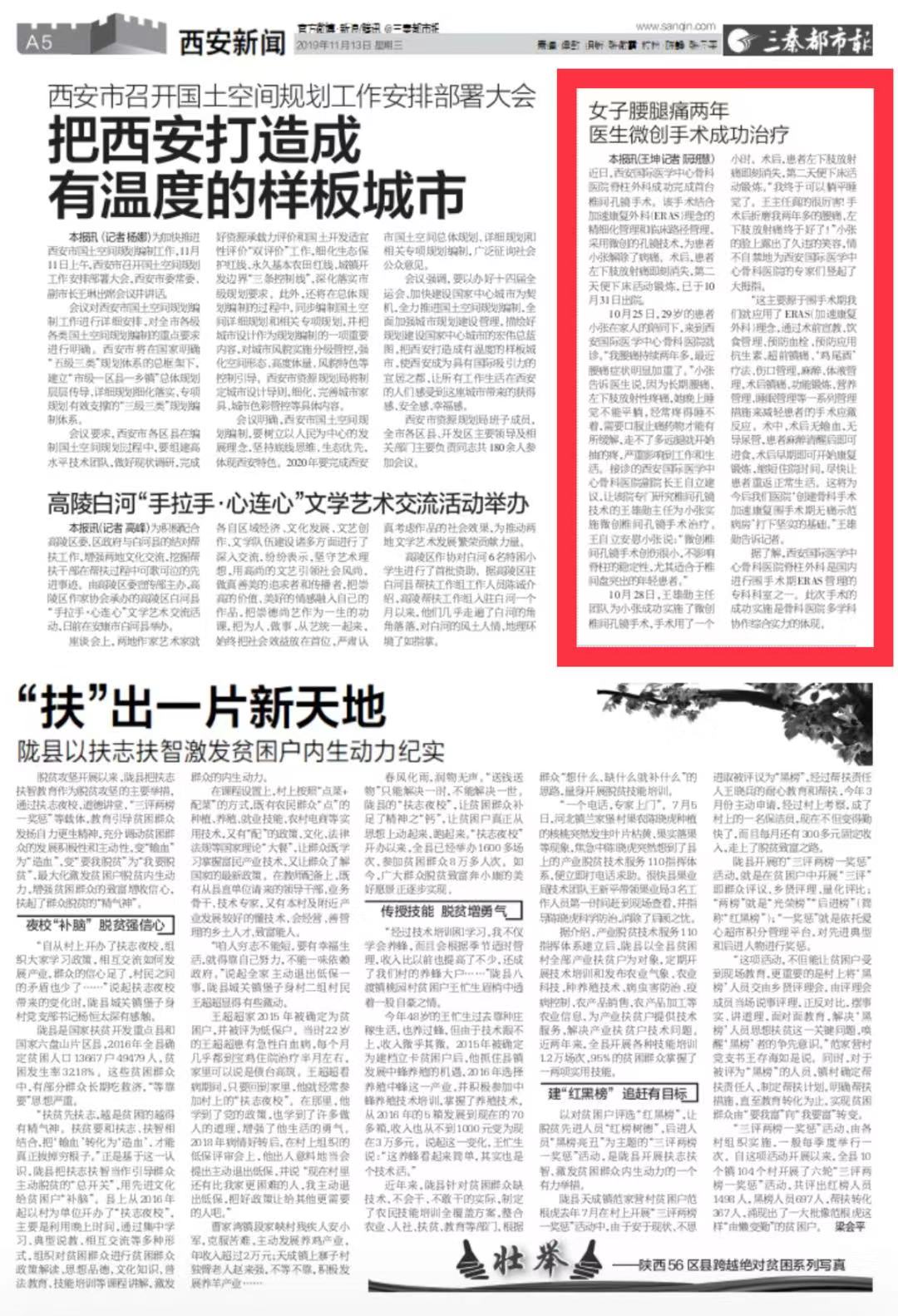 三秦都市報報道—女子腰腿痛兩年 醫(yī)生微創(chuàng)手術成功治療。點擊閱讀。