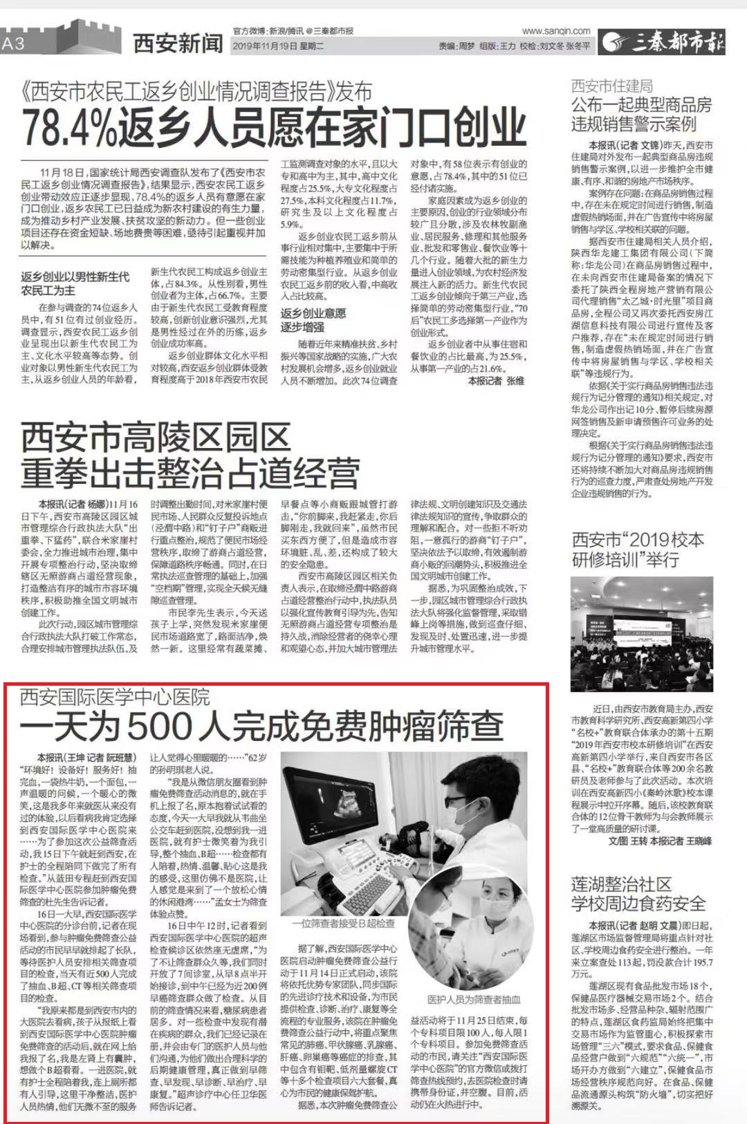 三秦都市報報道—西安國際醫(yī)學(xué)中心醫(yī)院一天為500人完成免費腫瘤篩查。點擊閱讀。