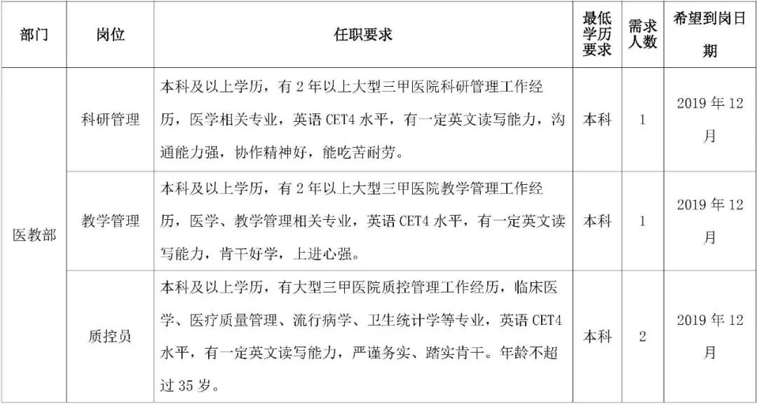 擁護(hù)黨的路線、方針、政策;遵守國家法律、法規(guī);熱愛本職工作,責(zé)任心強(qiáng),有良好的職業(yè)道德,認(rèn)同國際醫(yī)學(xué)價(jià)值理念,愿意投身醫(yī)療事業(yè);所學(xué)專業(yè)必須與應(yīng)聘崗位要求相符或必須具有相關(guān)從業(yè)經(jīng)歷。