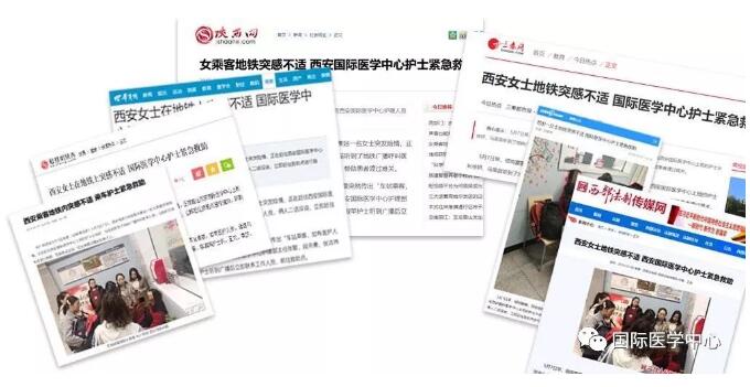徐妍、馬苗苗緊急救助患者后,宣傳策劃部立即進(jìn)行了深入采訪,及時(shí)撰寫(xiě)了消息《西安女士在地鐵上突感不適,國(guó)際醫(yī)學(xué)中心護(hù)士緊急救助》,并率先在國(guó)際醫(yī)學(xué)中心公眾號(hào)上發(fā)布,獲數(shù)萬(wàn)位網(wǎng)友點(diǎn)贊熱評(píng)。