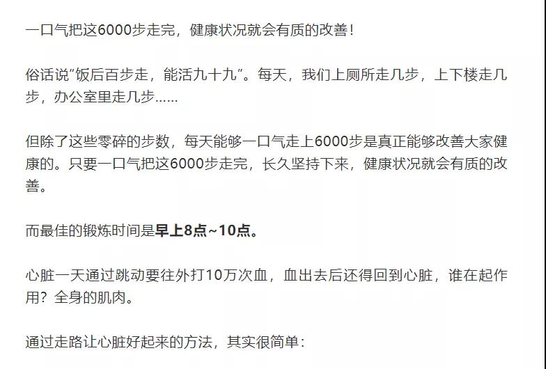 但是不要盲目的“拼微信步數(shù)”,在健康的基礎(chǔ)上,有意識地加大、加快步伐,將運動融入生活、增加熱量消耗,讓走路這顆“長壽藥”發(fā)揮最大效果。