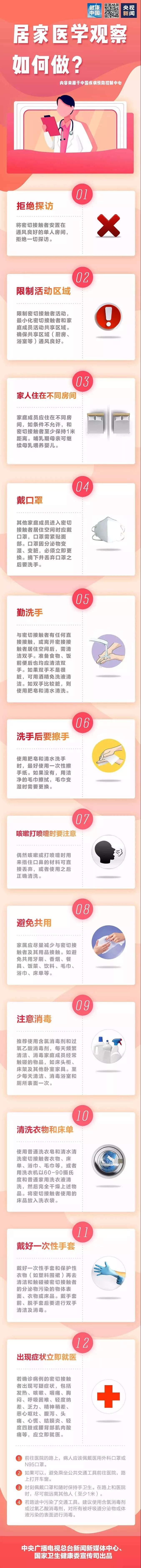 春節(jié)假期即將畫上句號,又一個交通小高峰將到來。多地發(fā)布尋人通告,急尋與確診新型冠狀病毒肺炎患者密切接觸或同乘交通工具的乘客。如果您需要在家留觀隔離14天,請您跟隨下圖了解“居家醫(yī)學觀察如何做”。