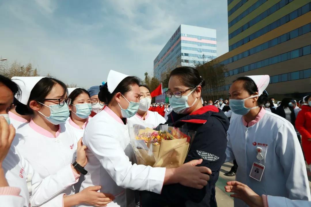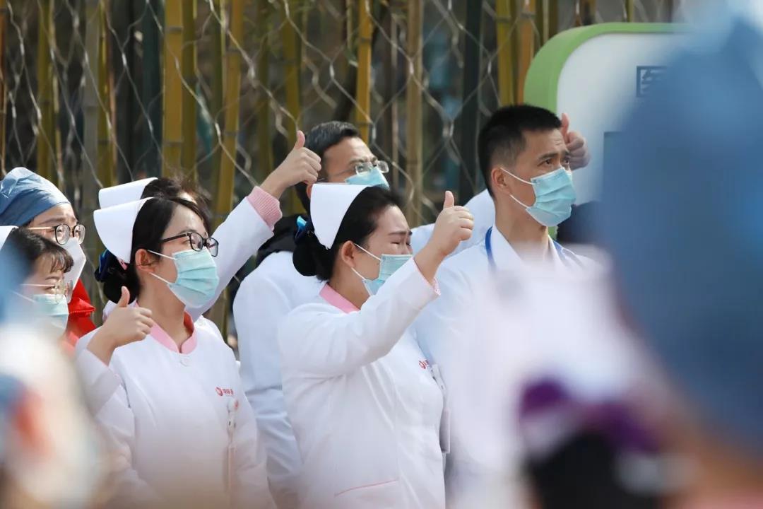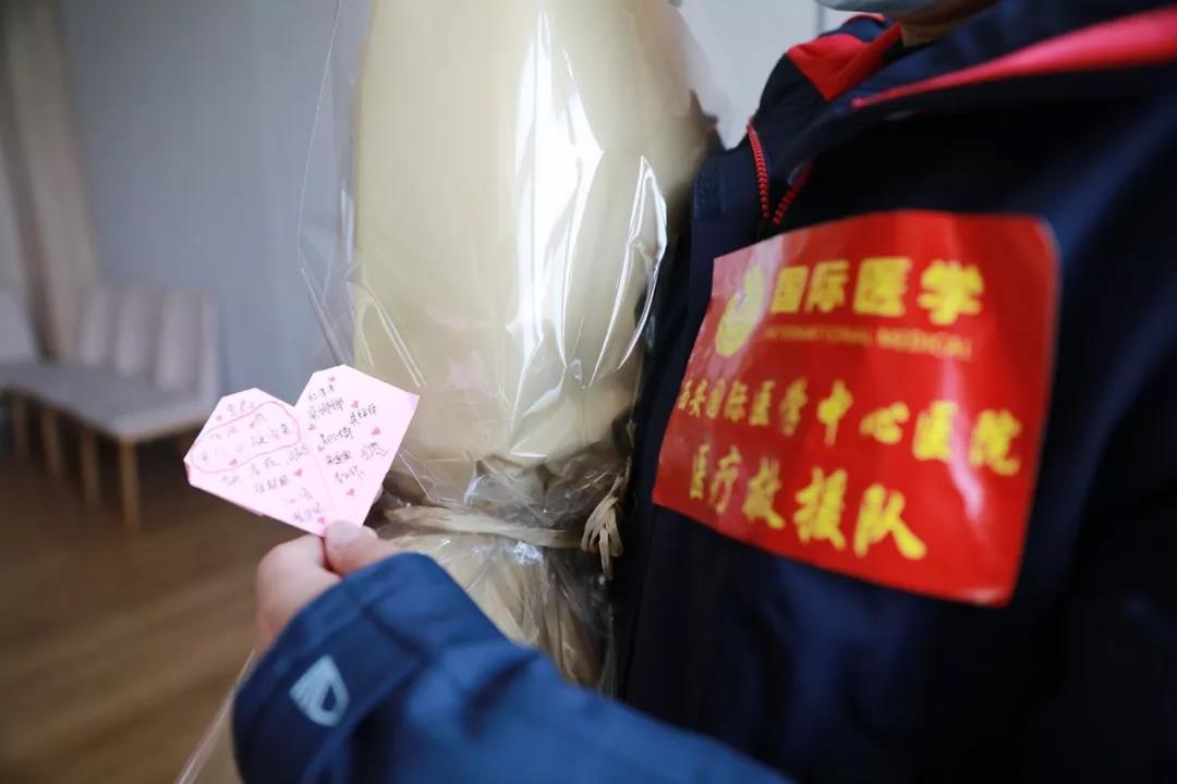“國際醫(yī)學(xué)加油!武漢加油!中國加油!”全體醫(yī)護(hù)人員鏗鏘有力的聲音傳達(dá)出身為國際醫(yī)學(xué)人的自豪感與使命感,堅(jiān)定了同舟共濟(jì)、抗擊疫情的信心。