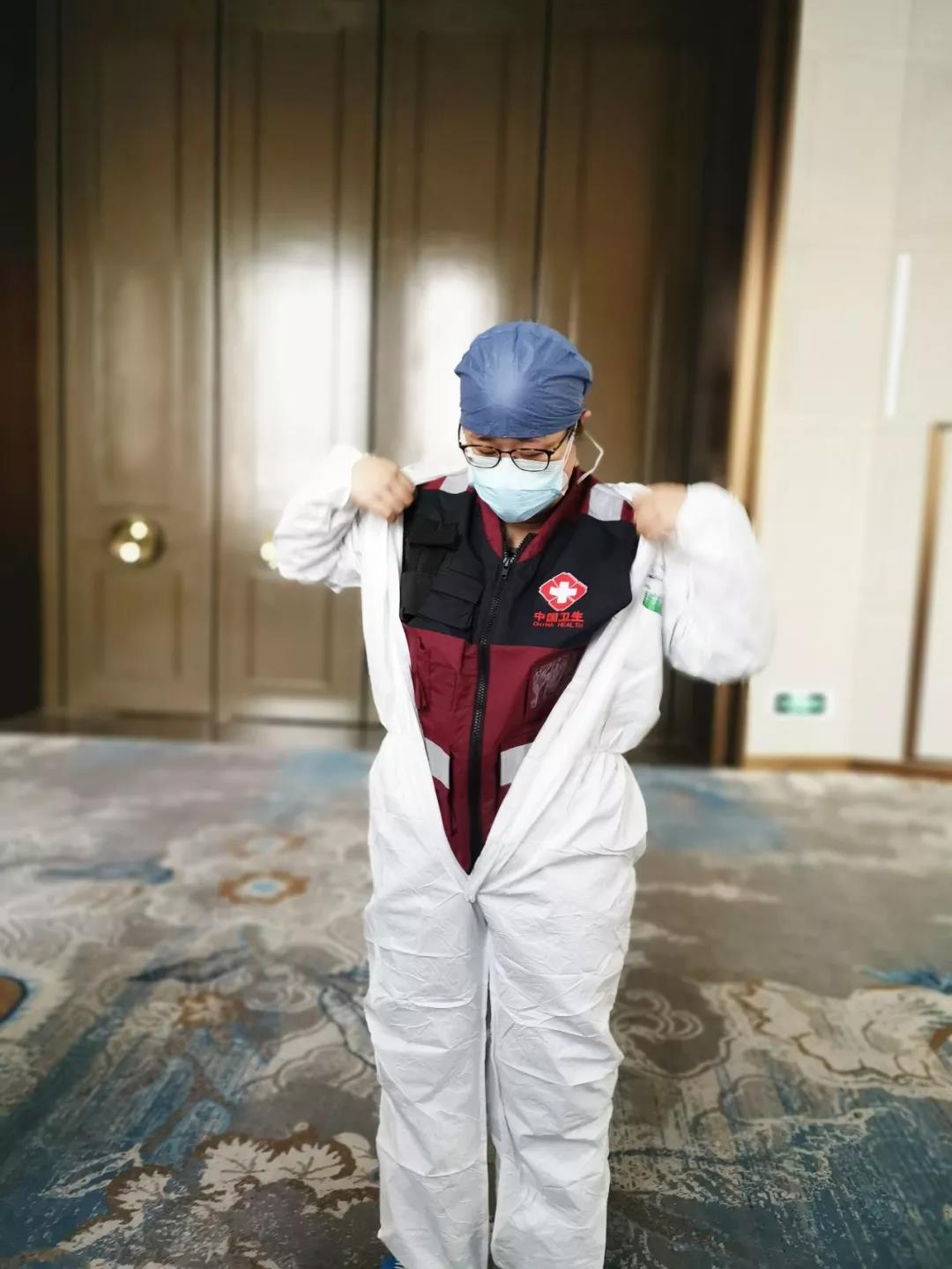 晚上十點(diǎn)多,大家仍然在反復(fù)溫習(xí)筆記,不斷練習(xí)穿脫防護(hù)服。穿防護(hù)服:十五個(gè)左右的步驟;脫防護(hù)服:二十多個(gè)步驟。每一個(gè)重要?jiǎng)幼饕毩?xí)上百次,穿脫幾次后,往往汗流浹背。