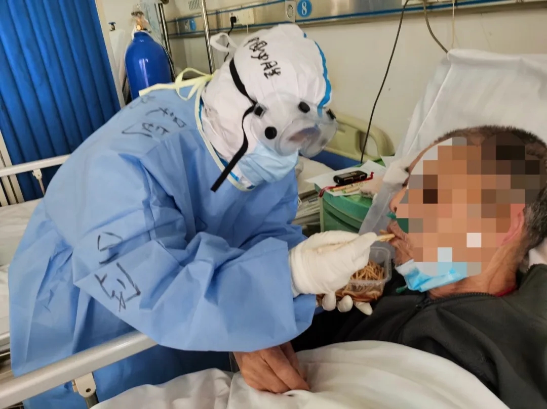 最近,我們病區(qū)來了一群特殊的新冠肺炎患者,他們大多數都是八十歲以上的老人,有的生活不能自理,除了日常的治療以外還需要生活護理,喂飯、喂水、喂藥、換紙尿褲等,都需要護士姐妹們來照顧。