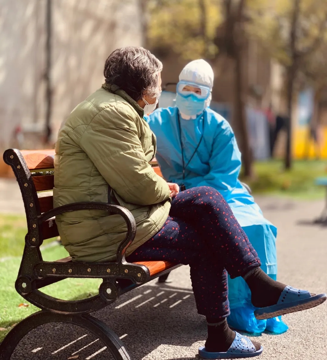 8艙有一位80多歲的老奶奶,中午出來(lái)遛彎時(shí)看到了醫(yī)療隊(duì)護(hù)士萬(wàn)珍妮,主動(dòng)過(guò)來(lái)攀談?!澳闶顷兾鱽?lái)的?我看你衣服上寫著西安幾個(gè)字了。”“是啊,奶奶,我們是西安國(guó)際醫(yī)學(xué)中心醫(yī)院來(lái)武漢支援的?!比f(wàn)珍妮通過(guò)和奶奶聊天得知,奶奶的父親以前在寶雞工作過(guò)很長(zhǎng)時(shí)間?!拔乙菜惆雮€(gè)陜西人了。沒(méi)想到在這里還能見(jiàn)到“老鄉(xiāng)”!感謝你們!”奶奶感覺(jué)很親切,和萬(wàn)珍妮話起了“家常”。
