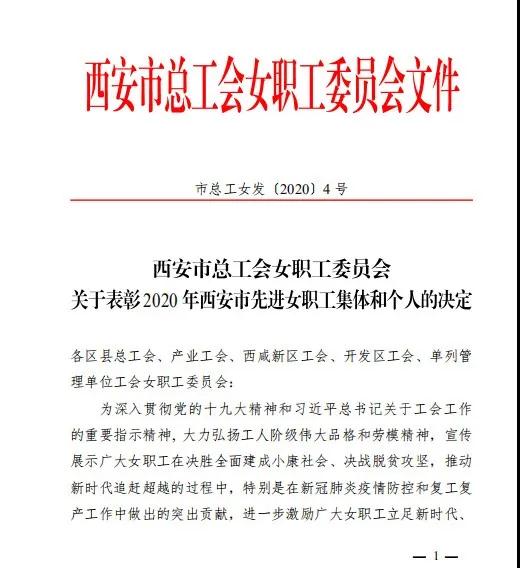 西安市總工會在《關(guān)于表彰2020年西安市先進(jìn)女職工集體和先進(jìn)個人的決定》指出,在抗擊新冠肺炎疫情的關(guān)鍵時刻,薛妍副院長主動請纓馳援武漢、隨州兩地。在戰(zhàn)斗中時刻以高度的責(zé)任意識和擔(dān)當(dāng)精神做好每項工作。在武漢第八醫(yī)院,她參與專家組工作,規(guī)劃救治重點(diǎn)及工作流程,制定診療方案,保證各項工作順利展開。在隨州市中心醫(yī)院,她負(fù)責(zé)醫(yī)療隊的后勤保障以及隊員們的衣食住行,被隨州市委授予“抗擊新冠肺炎疫情先進(jìn)個人”榮譽(yù)稱號。