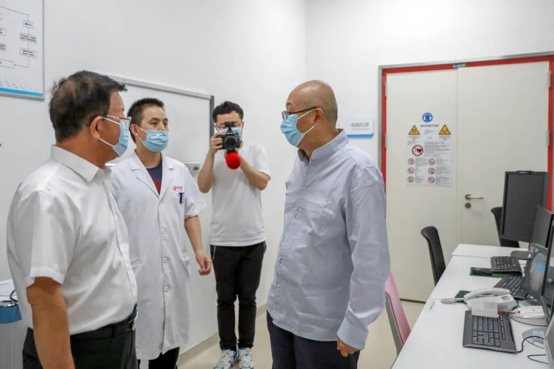 在西安國際醫(yī)學(xué)中心醫(yī)院總經(jīng)理王志峰陪同下,馮侖一行先后參觀了西安國際醫(yī)學(xué)中心醫(yī)院的急救中心、影像診療中心、檢驗中心、神經(jīng)康復(fù)科以及神經(jīng)內(nèi)科,詳細了解院區(qū)規(guī)劃、先進設(shè)備、專家團隊,實地查看患者就醫(yī)環(huán)境,與集團領(lǐng)導(dǎo)在會議室進行了親切交談。