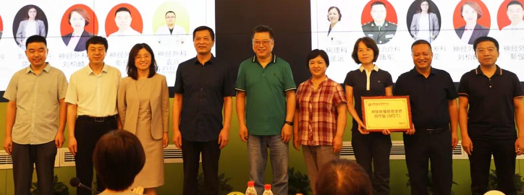 在與會(huì)人員見證下,高國(guó)棟教授,石梅教授,賀世明教授同甘肅省腫瘤醫(yī)院,寧夏醫(yī)科大學(xué)總院,西京醫(yī)院,西安交大一附院等參會(huì)專家共同為西安國(guó)際醫(yī)學(xué)中心醫(yī)院神經(jīng)腫瘤綜合診療協(xié)作組(MDT)剪彩揭牌。