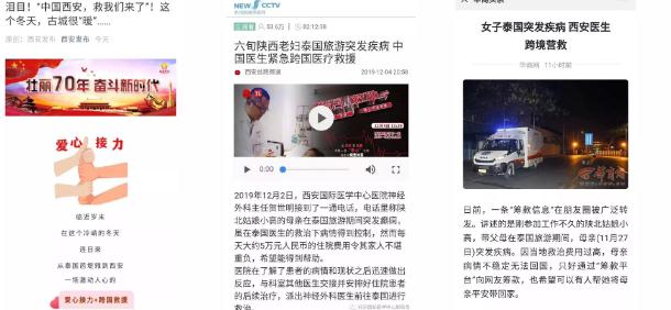 12月4日,西安國(guó)際醫(yī)學(xué)中心醫(yī)院醫(yī)護(hù)人員在西安咸陽(yáng)國(guó)際機(jī)場(chǎng)的特殊通道嚴(yán)陣以待,中國(guó)駐泰國(guó)大使館多方協(xié)調(diào),春秋航空總部提供幫助,西安市人民政府外事辦公室啟動(dòng)安全領(lǐng)事保護(hù)機(jī)制,西安咸陽(yáng)機(jī)場(chǎng)海關(guān)通力協(xié)調(diào)、盡可能壓縮通關(guān)時(shí)長(zhǎng),西安咸陽(yáng)國(guó)際機(jī)場(chǎng)運(yùn)行控制協(xié)調(diào)中心鼎力支持,從泰國(guó)到西安,直到西安國(guó)際醫(yī)學(xué)中心醫(yī)院的救護(hù)車停在停機(jī)坪上……陜西省多家媒體多方報(bào)道、中央電視臺(tái)二套播報(bào)點(diǎn)贊,跨國(guó)救援的故事溫暖了西安城。