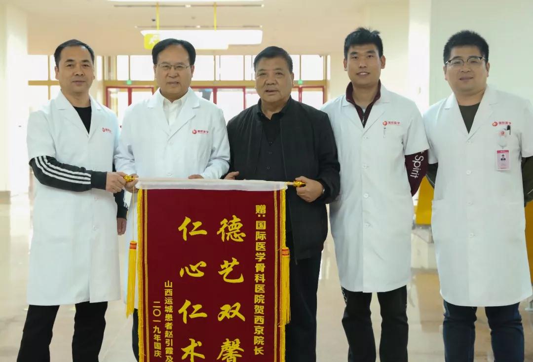 10月9號(hào)下午兩點(diǎn)半,患者家屬專程來到骨科醫(yī)院向賀西京院長贈(zèng)送錦旗以示感謝。所有參與手術(shù)的醫(yī)護(hù)工作者都非常欣慰,并表示會(huì)再接再厲,珍惜每一次服務(wù),一次做好。