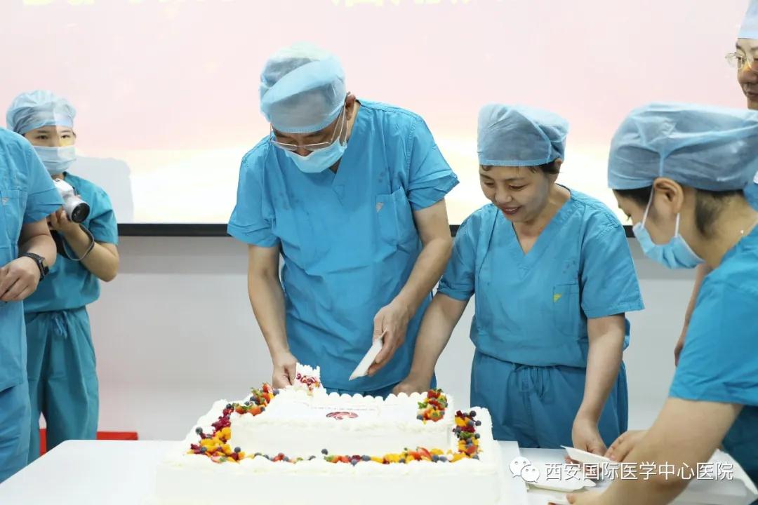 最后,在全體人員熱烈的掌聲下,醫(yī)院領(lǐng)導(dǎo)共同切蛋糕,慶祝所取得的豐碩成果。