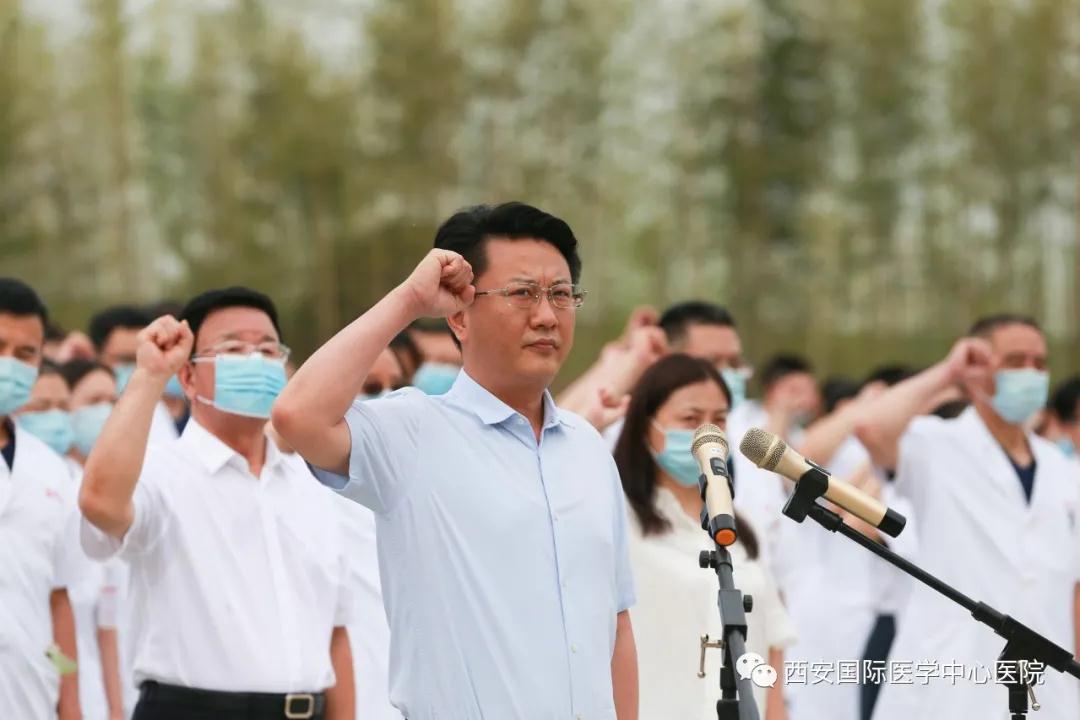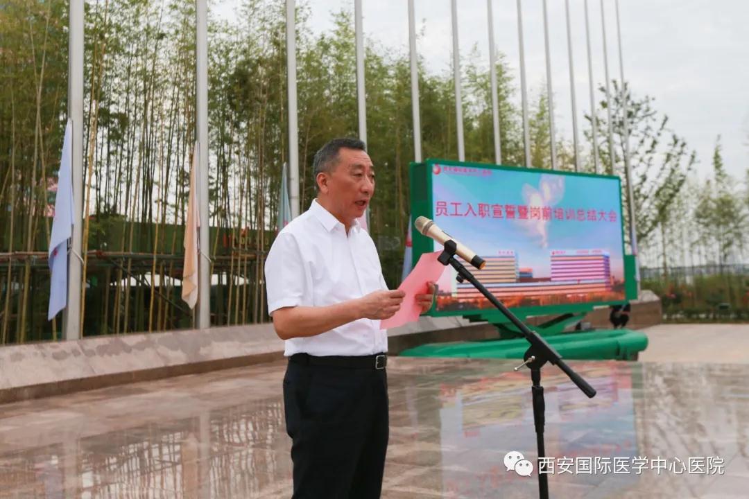 8月3日,西安國(guó)際醫(yī)學(xué)中心醫(yī)院舉行新員工入職宣誓暨崗前培訓(xùn)總結(jié)儀式。尹強(qiáng)院長(zhǎng)、王志峰總經(jīng)理、楊峰副院長(zhǎng)、李武平副院長(zhǎng)、張斌副院長(zhǎng)、財(cái)務(wù)總監(jiān)王亞星等領(lǐng)導(dǎo)出席,232名新入職員工參加。入職儀式由楊峰副院長(zhǎng)主持。