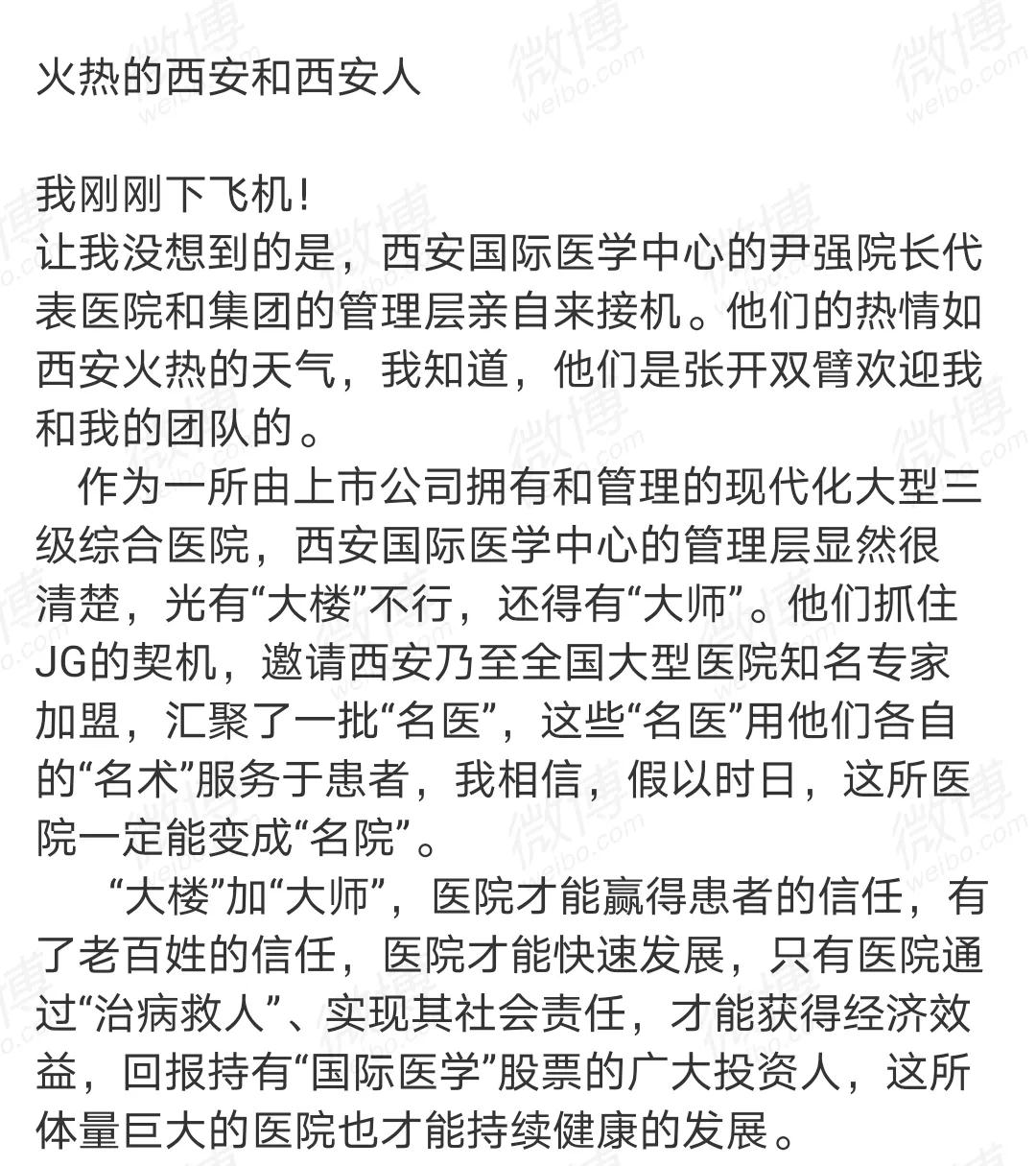 “讓我沒想到的是,西安國際醫(yī)學(xué)中心醫(yī)院的尹強(qiáng)院長代表醫(yī)院和集團(tuán)的管理層親自來接機(jī),我知道,他們是張開雙臂歡迎我和我的團(tuán)隊(duì)的?!边@是郭樹忠教授加盟該院時,在機(jī)場發(fā)布的一條微博。