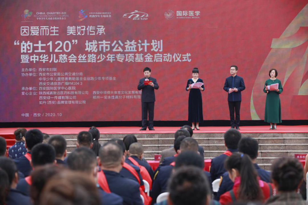 由西安市婦聯(lián)主辦,西安市公安局公共交通分局、中華少年兒童慈善救助基金會絲路少年專項基金以及西安交通旅游廣播FM104.3協(xié)辦,西安國際醫(yī)學(xué)中心醫(yī)院承辦“的士120”城市公益計劃暨中華兒慈會絲路少年專項基金啟動儀式在這里隆重舉行。