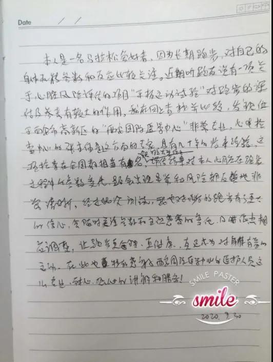 “本人是一名馬拉松愛好者,因?yàn)殚L(zhǎng)期跑步對(duì)自己的身體機(jī)能參數(shù)和反應(yīng)比較關(guān)注,近期聽朋友說有一項(xiàng)關(guān)于心臟風(fēng)險(xiǎn)評(píng)估的項(xiàng)目。我在網(wǎng)上查找并比較發(fā)現(xiàn),平板運(yùn)動(dòng)試驗(yàn)對(duì)跑步的評(píng)估及參數(shù)有較大的作用,西安國(guó)際醫(yī)學(xué)中心醫(yī)院非常專業(yè),心電檢查中心的張錄興主任是這方面的專家,具有幾十年的臨床經(jīng)驗(yàn),這項(xiàng)檢查在全國(guó)都相當(dāng)有名。今天通過這項(xiàng)檢查評(píng)估結(jié)果,對(duì)心臟在跑步過程中的參數(shù)變化,是否會(huì)出現(xiàn)異常和風(fēng)險(xiǎn),都反饋得非常清晰,經(jīng)過這次測(cè)試后,我也對(duì)今后的跑步有了更大的信心,會(huì)隨時(shí)關(guān)注參數(shù)和主觀感受的變化,日后會(huì)做出相應(yīng)的調(diào)整,讓跑步更合理,更健康,真正地成為對(duì)身體有益的運(yùn)動(dòng),在此也非特別感謝西安國(guó)際醫(yī)學(xué)中心醫(yī)護(hù)人員這么專業(yè)、耐心熱情的講解和服務(wù)。”