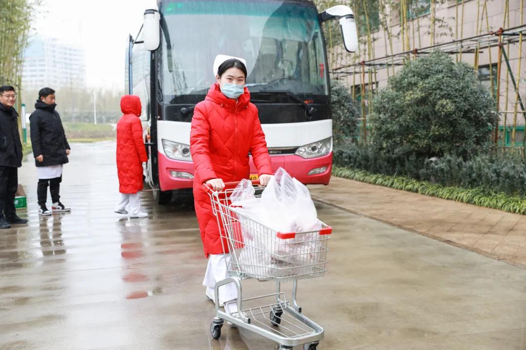 當(dāng)日上午,蒙古國捐贈的486箱冷凍羊乘“接運專車”到達(dá)陜西西安。按照國家統(tǒng)一部署,羊經(jīng)過嚴(yán)格檢驗檢疫加工后轉(zhuǎn)運陜西省,分配給前往湖北參與新冠肺炎疫情醫(yī)療救治工作的醫(yī)療隊員。我院收到100箱捐贈羊。下午五點,張良院長助理帶領(lǐng)綜合辦公室工作人員,將一袋袋羊肉發(fā)到醫(yī)療隊隊員們手中。