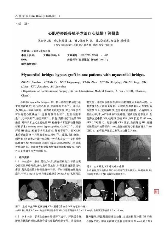 近日,西安國際醫(yī)學(xué)中心醫(yī)院心臟病醫(yī)院副院長張金洲教授等撰寫的“Myocardial bridge Bypass Graft: a Novel Surgical Procedure for Extensive Myocardial Bridges”(心肌橋旁路移植手術(shù):治療廣泛心肌橋的一種新的外科術(shù)式)被心胸外科領(lǐng)域的頂級期刊Ann Thorac Surg接受,代表西安國際醫(yī)學(xué)中心醫(yī)院心臟外科首創(chuàng)的這一術(shù)式得到國際同行的認可。2020年4月,張金洲教授首次應(yīng)用這一術(shù)式治療一例難治性廣泛心肌橋病人,取得滿意的療效。隨后,心血管領(lǐng)域國內(nèi)權(quán)威期刊《心臟雜志》以快速通道的方式報道了這一術(shù)式,引起國內(nèi)同行和患者的關(guān)注。至此,我院心臟外科首創(chuàng)技術(shù)獲得國內(nèi)外同行的認可。