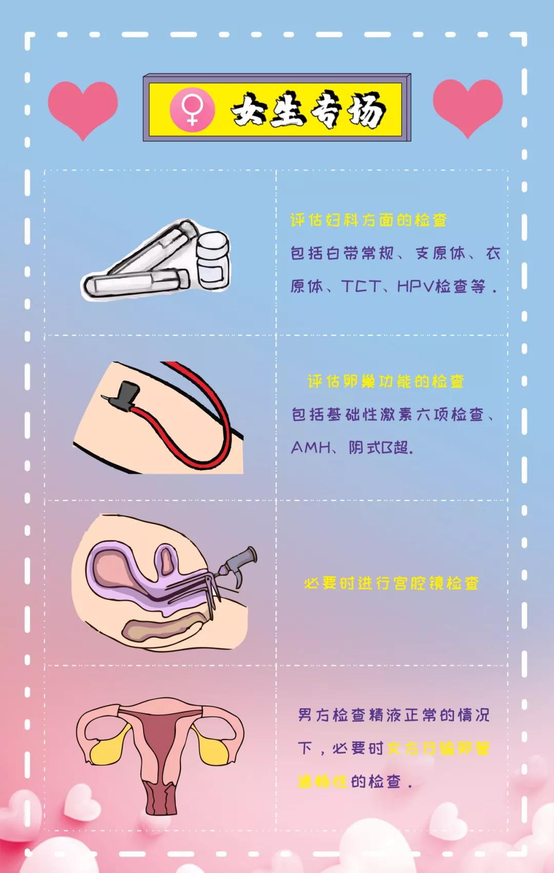 這些主要檢查生殖系統(tǒng)及器官是否有病變,“種子是否健康,土地是否肥沃”,“寶寶未來(lái)的家”是否“宜居”。如果發(fā)現(xiàn)問(wèn)題就有足夠的時(shí)間進(jìn)行治療,以免一些疾病影響到卵子、精子的質(zhì)量以及后期備孕成功后對(duì)胚胎發(fā)育的影響甚至導(dǎo)致流產(chǎn)。