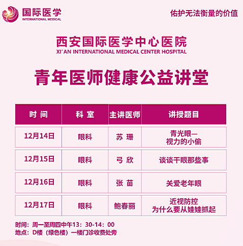 西安國際醫(yī)學(xué)中心醫(yī)院—青年醫(yī)師健康公益講堂預(yù)告