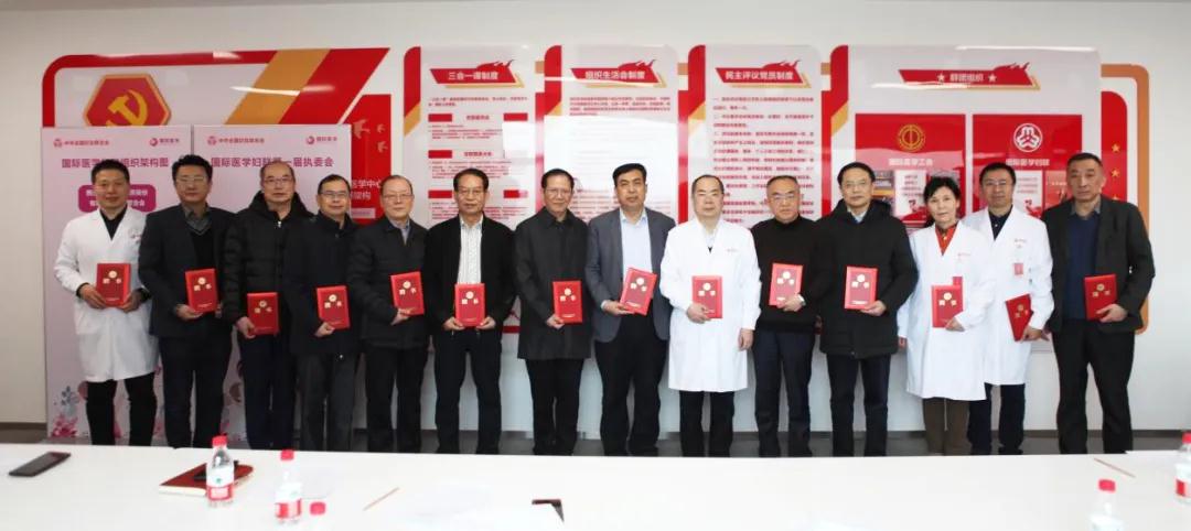 張斌副院長(zhǎng)宣讀新一屆醫(yī)院醫(yī)療技術(shù)專家委員會(huì)成立文件。尹院長(zhǎng)向全體委員頒發(fā)聘書(shū)并合影留念。