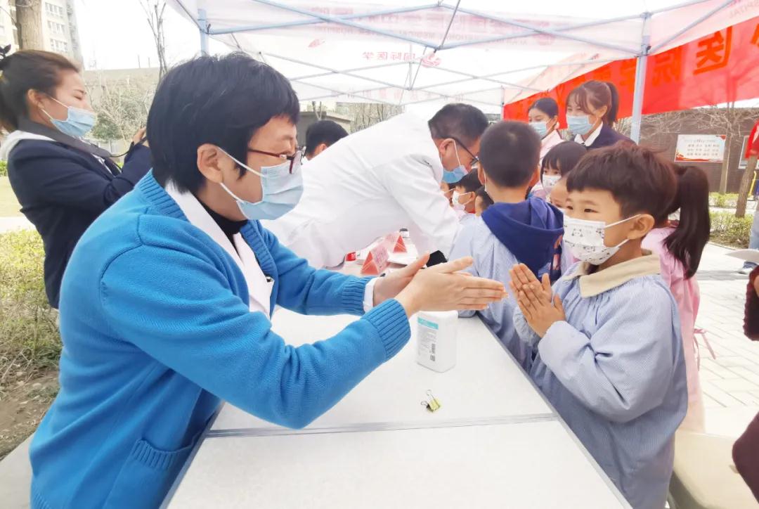 在創(chuàng)匯社區(qū)義診現(xiàn)場,高新第八幼兒園的小朋友們在醫(yī)護人員的帶領下學做“洗手操”。醫(yī)生用通俗易懂的語言,詳細講解了洗手的重要性及如何正確洗手遠離細菌等相關知識,分步驟教會了小朋友們?nèi)绾握_洗手。同時,醫(yī)護人員還為小朋友們介紹了體檢車的功能及用途,并帶領大家進入體檢車參觀。