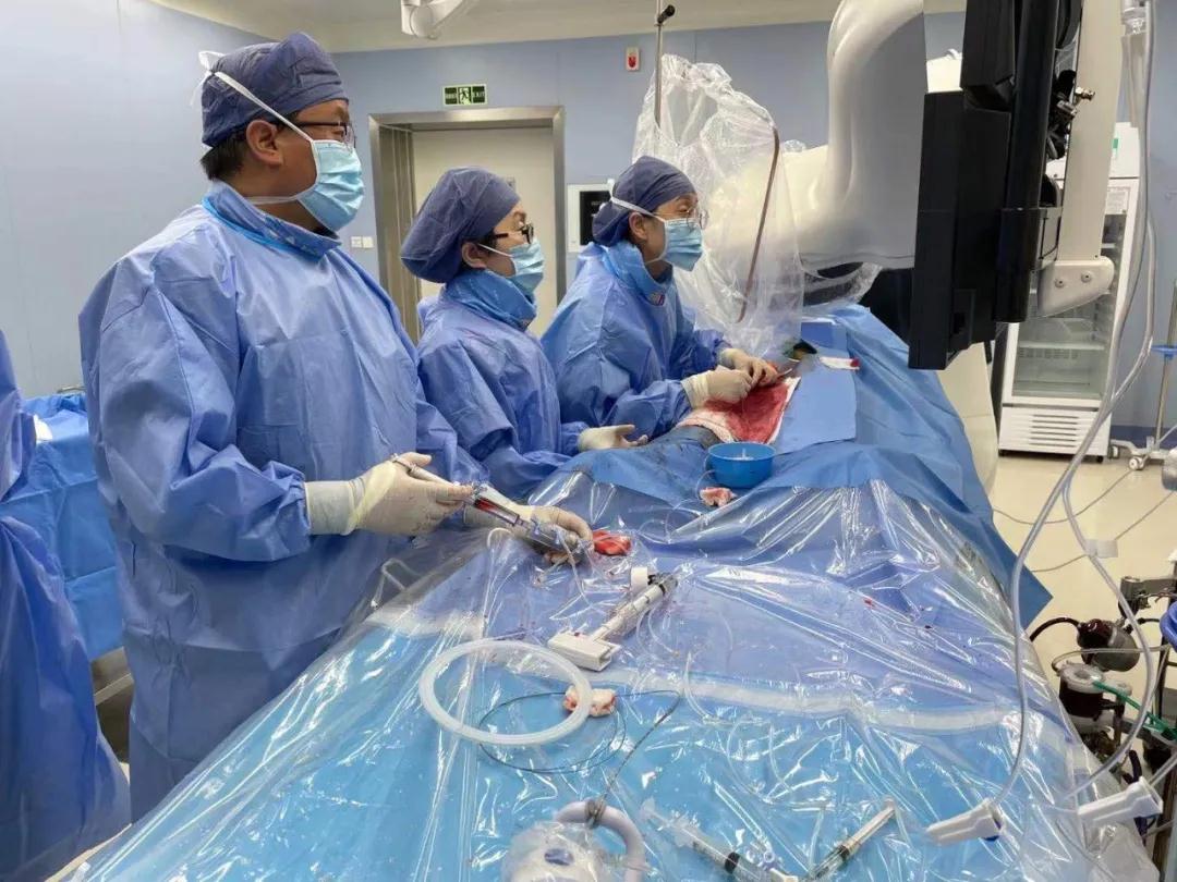 患者已有3枚支架,右冠狀動(dòng)脈還是完全閉塞的狀態(tài),考慮到手術(shù)風(fēng)險(xiǎn)極大,李偉杰建議在體外膜肺氧合技術(shù)(ECMO)輔助下行支架植入術(shù)。體外膜肺氧合技術(shù)是一種高端的人工心肺替代技術(shù),可以暫時(shí)代替患者的心臟和肺臟進(jìn)行做工,常用于各種危重癥患者。由于手術(shù)難度高,風(fēng)險(xiǎn)大,李偉杰副院長(zhǎng)帶領(lǐng)由衛(wèi)錦娟副主任醫(yī)師、郭艷杰副主任醫(yī)師、王長(zhǎng)鷹主治醫(yī)師、孫闖主治醫(yī)師組成的心臟內(nèi)科三病區(qū)手術(shù)核心團(tuán)隊(duì)分工合作,在心臟外科二病區(qū)主任程亮團(tuán)隊(duì)的保駕護(hù)航下,手術(shù)最終順利完成,患者平穩(wěn)返回病房,家屬激動(dòng)不已。第一位患者手術(shù)結(jié)束后,在李偉杰的帶領(lǐng)下,兩支團(tuán)隊(duì)又著手為另一位嚴(yán)重三支病變患者實(shí)施了ECMO輔助下支架植入術(shù),手術(shù)在團(tuán)隊(duì)密切配合下順利完成。