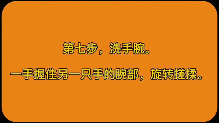 3、認(rèn)真揉搓雙手至少 15s,注意清洗雙手所有皮膚,包括指背、指尖和指縫,具體揉搓步驟(即七步洗手法步驟):