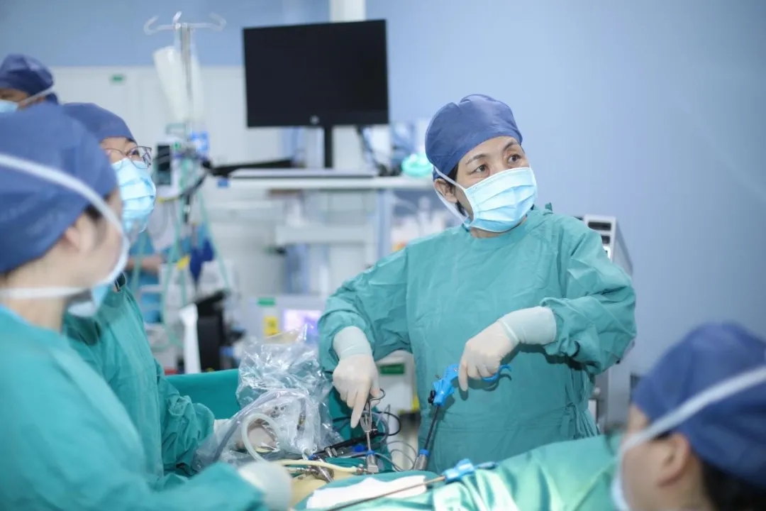 手術(shù)由王海琳院長(zhǎng)首先操刀,為患者進(jìn)行子宮及雙側(cè)輸卵管切除。