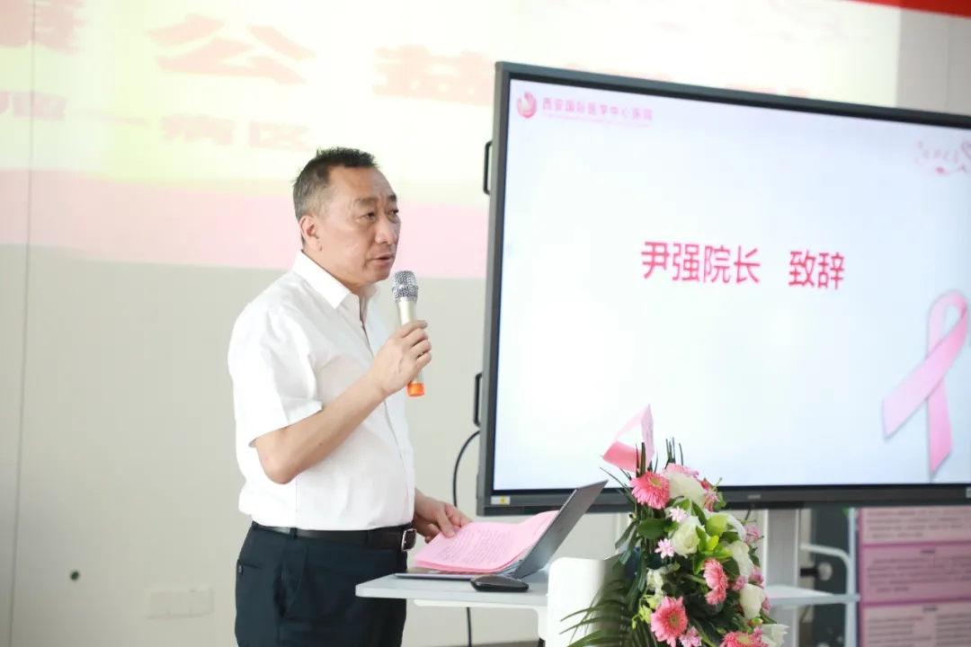 西安癌癥康復(fù)協(xié)會(huì)張建設(shè)副理事長向腫瘤健康公益活動(dòng)的舉辦和“綻妍之家”的成立致以誠摯的祝福,感謝薛妍副院長牽頭搭建起了醫(yī)患互動(dòng)、雙向交流平臺(tái),“綻妍之家”的成立也為腫瘤患者在西安國際醫(yī)學(xué)中心醫(yī)院建立了一個(gè)“患者之家”。