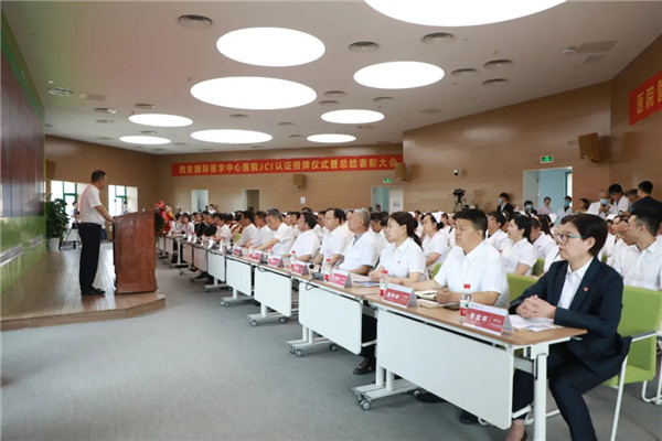 5月27日,西安國際醫(yī)學(xué)中心醫(yī)院舉行JCI認(rèn)證授牌儀式暨總結(jié)表彰大會(huì)。聯(lián)合委員會(huì)國際部總裁兼首席執(zhí)行官PaulaWilson ,聯(lián)合委員會(huì)國際部中國區(qū)主任、JCI評審(北京)有限公司副總經(jīng)理任暉,聯(lián)合委員會(huì)國際部JCI認(rèn)證組組長孔雅雀,華潤JCI研究院執(zhí)行院長酈忠,西安國際醫(yī)學(xué)投資股份有限公司總裁劉瑞軒、副董事長王愛萍、副總裁孫文國、副總裁王杲、孫義寬,西安國際醫(yī)學(xué)中心醫(yī)院院長尹強(qiáng)、總經(jīng)理王志峰等領(lǐng)導(dǎo),各??漆t(yī)院院長、主任、護(hù)士長以及職工代表參加。