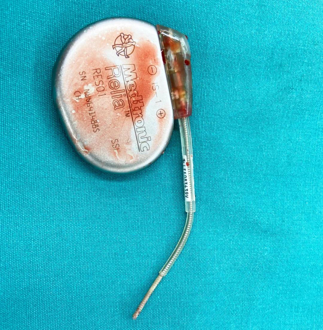 18歲的甜葵迎來了她人生中的第二次開胸體外循環(huán)手術(shù)。股動(dòng)靜脈插管進(jìn)行體外循環(huán)轉(zhuǎn)流保駕,搖擺鋸劈開胸骨,游離粘連心包,游離上下腔靜脈,插上腔直角插管,阻斷上下腔。切開右心房,可見起搏器纏繞在右心房?jī)?nèi),導(dǎo)線從右心耳處穿出,進(jìn)入心包腔,沿右側(cè)心包到達(dá)右前心包與膈肌交界,穿出心包腔,進(jìn)入腹部皮下。張金洲副院長(zhǎng)小心翼翼地在導(dǎo)線出右房處剪斷,一點(diǎn)點(diǎn)分離將電極從右心室心內(nèi)膜拔出。心包外導(dǎo)線和隧道一并切除至膈肌處,檢查右心室內(nèi)膜光滑,無破損,停止體外循環(huán)。雙氧水、碘伏、抗生素、生理鹽水反復(fù)沖洗起搏器囊袋和竇道,逐層縫合皮下組織和皮膚,手術(shù)順利完成。術(shù)后第二天拔除氣管插管,次日搬回普通病房。甜葵于6月10日轉(zhuǎn)至心臟內(nèi)科一病區(qū),11日下午張衛(wèi)澤副院長(zhǎng)為其安置永久起搏器,手術(shù)順利。