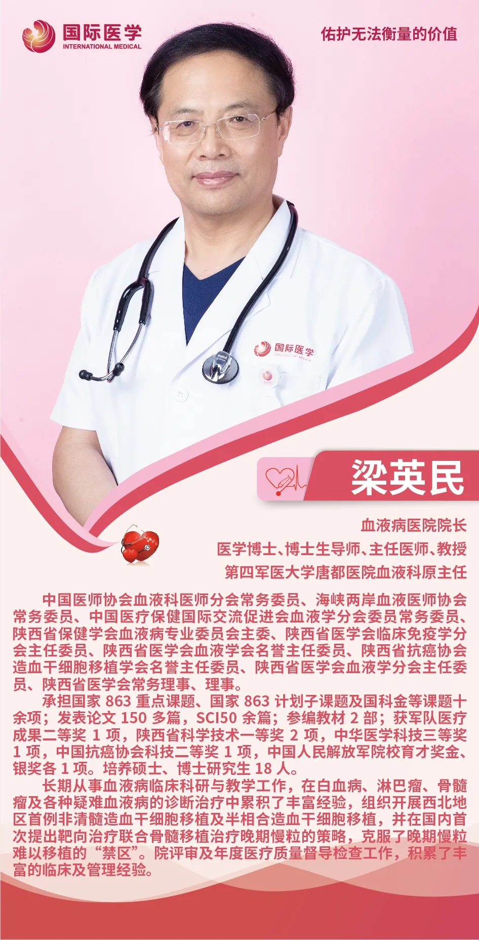 醫(yī)院人才濟濟,知名血液病專家梁英民教授擔(dān)任院長及學(xué)術(shù)帶頭人,多名血液病專家教授傾情加盟,擁有一支臨床經(jīng)驗豐富的中青年專業(yè)醫(yī)療技術(shù)團隊。醫(yī)療團隊人員均為碩士以上學(xué)歷,且在國內(nèi)各大三甲醫(yī)院擁有多年臨床執(zhí)業(yè)經(jīng)驗,血液病以及移植相關(guān)經(jīng)驗足,診治精準,專業(yè)技術(shù)過硬,處理危重病患實力強。全院現(xiàn)有人員編制171人,醫(yī)師47人、護士113人、技師11人,其中高級職稱編制14人,中級職稱編制11人、初級職稱編制22人。