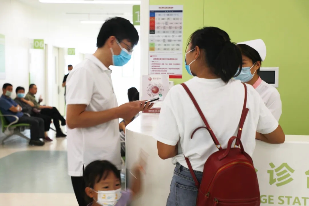 在醫(yī)院各個(gè)診區(qū)的咨詢(xún)處、分診臺(tái)前,醫(yī)護(hù)人員也為患者們講解活動(dòng)流程,耐心地為年齡較大不會(huì)使用手機(jī)的患者,預(yù)約掛號(hào)。