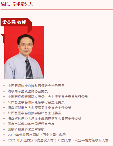 西安國際醫(yī)學(xué)中心醫(yī)院血液病院,成立于2019年,是一家集醫(yī)療、教學(xué)、科研為一體的綜合性專科醫(yī)院,擁有達到國家標準的外周造血干細胞/骨髓移植醫(yī)學(xué)中心。骨髓移植中心設(shè)有24張百級凈化層流倉、移植相關(guān)的醫(yī)療設(shè)備、病毒檢測技術(shù)及移植患者病情24小時監(jiān)測系統(tǒng)。