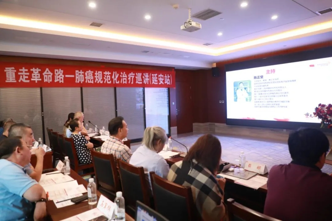 “重走革命路,肺癌規(guī)范化治療巡講-延安站”活動于在7月31日下午進行。上海交通大學(xué)醫(yī)學(xué)院附屬新華醫(yī)院副院長陳昶教授、西安國際醫(yī)學(xué)中心醫(yī)院腫瘤醫(yī)院院長南克俊教授、延安大學(xué)附屬醫(yī)院腫瘤科主任趙紅教授致辭。在“統(tǒng)籌全局,重新出發(fā)”、“與時俱進,走向希望”、“星火燎原,革命之路”三個環(huán)節(jié)中,延安、上海、遵義三地的專家們通過視頻會議各抒己見,博采眾長,就肺癌治療領(lǐng)域的諸多問題進行了充分地交流。西安國際醫(yī)學(xué)中心醫(yī)院胸科醫(yī)院李文海副院長、腫瘤醫(yī)院薛妍副院長分別作了題為《ASCO NSCLC術(shù)后輔助治療進展》、《ASCO NSCLC晚期治療進展》的報告,放射治療中心陸軍主任與腫瘤三病區(qū)劉金鵬主任主持并參與了討論。