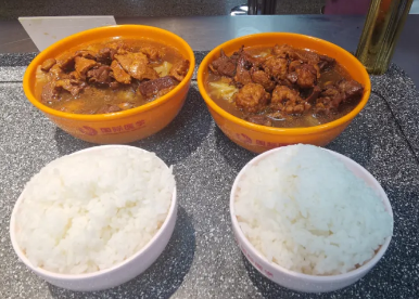 “米飯?zhí)撞屠锩婕t燒排骨、西紅柿炒蛋、白灼青菜都有,還可以選炸醬面、小菜、湯,營養(yǎng)均衡又健康。”他豎起了大拇指。