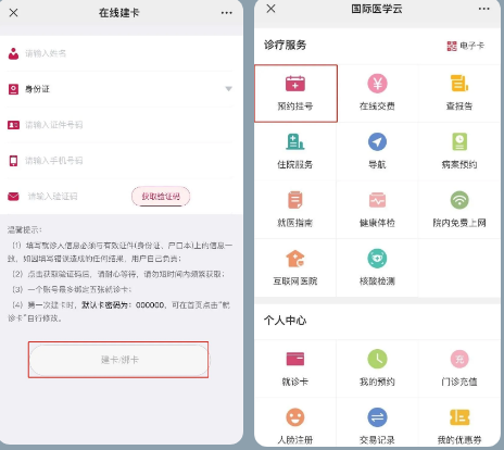 3、輸入個(gè)人信息完成就診卡綁定。綁卡后,點(diǎn)擊【預(yù)約掛號(hào)】