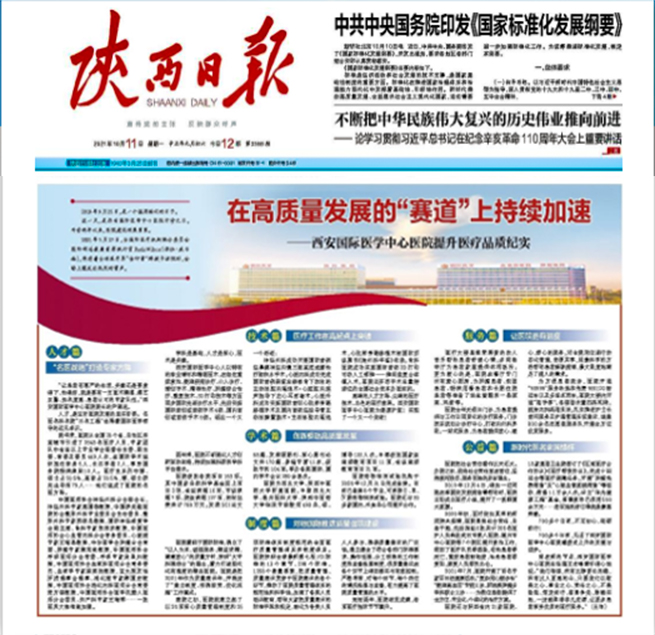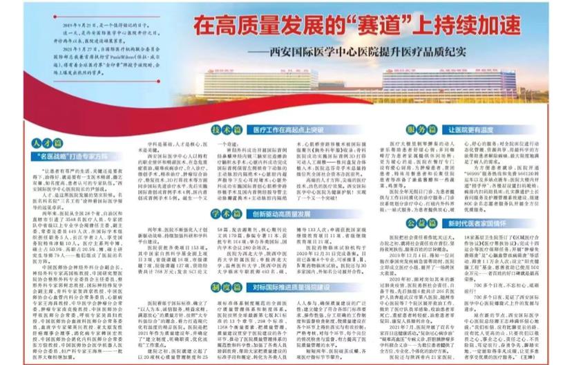 編者按:今日,《陜西日?qǐng)?bào)》A8版刊登了醫(yī)院提升醫(yī)療品質(zhì)紀(jì)實(shí)的長篇報(bào)道,從人才、技術(shù)、制度、學(xué)術(shù)、服務(wù)、公益等方面,全方位展示了醫(yī)院兩年來的發(fā)展進(jìn)程。