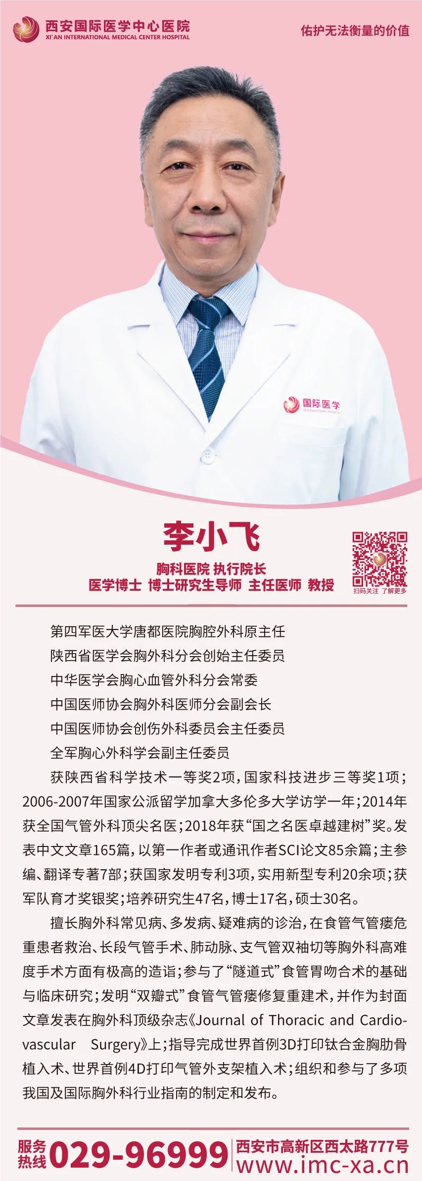 10月21日,著名胸科專家、第四軍醫(yī)大學(xué)唐都醫(yī)院胸腔外科原主任李小飛教授加盟西安國際醫(yī)學(xué)中心醫(yī)院,任胸科醫(yī)院執(zhí)行院長,為醫(yī)院發(fā)展注入強勁動力,促進醫(yī)院專業(yè)學(xué)科水平躍上新臺階。