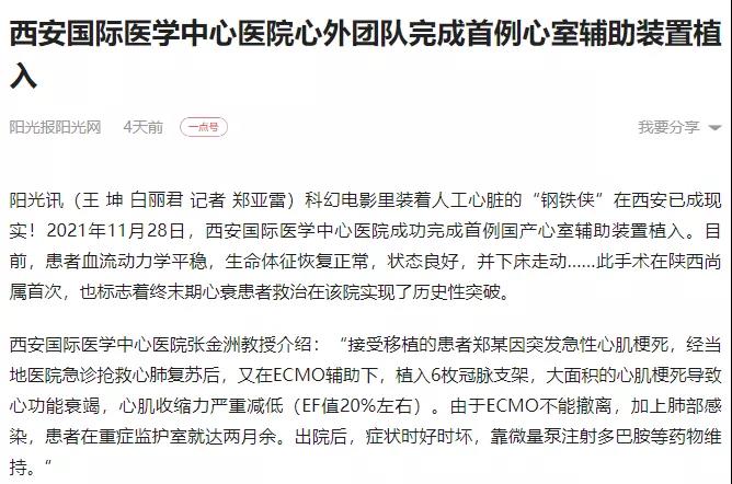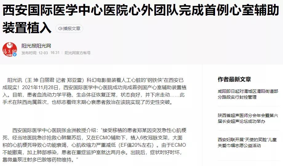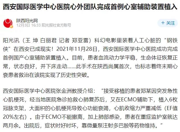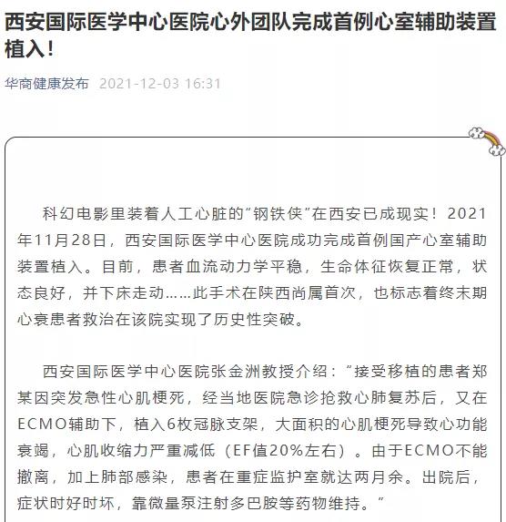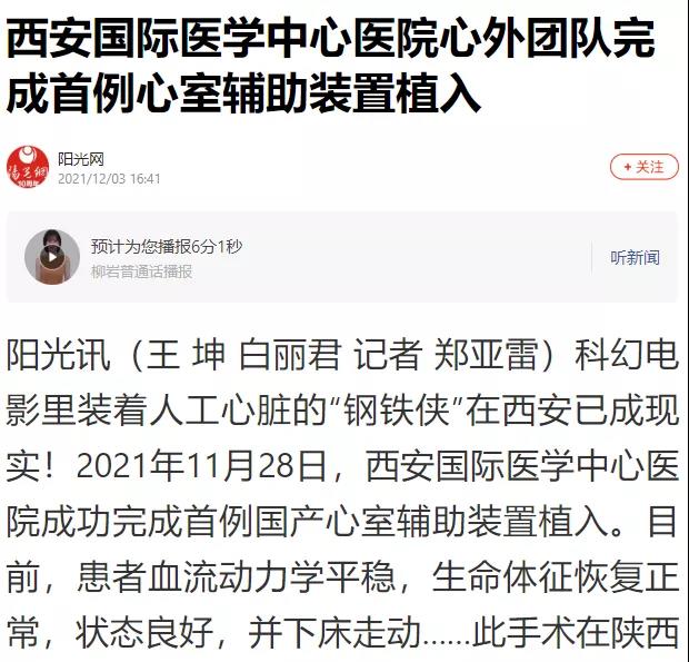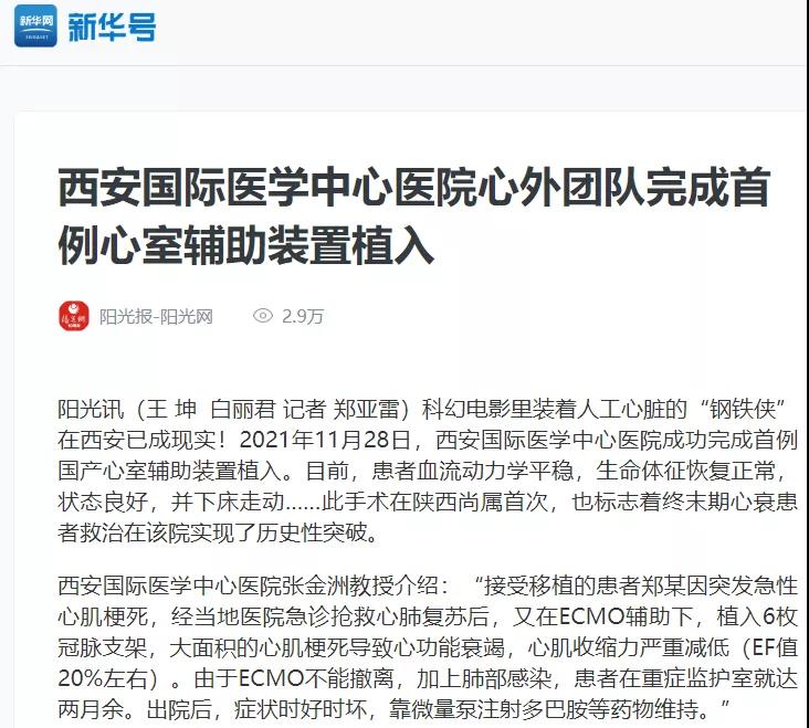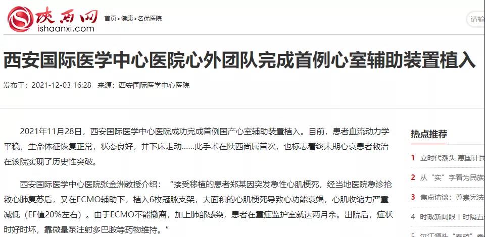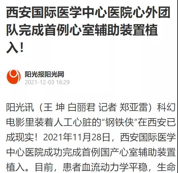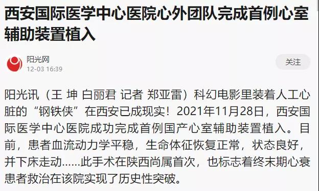 西安國際醫(yī)學(xué)中心醫(yī)院心外團(tuán)隊(duì)完成首例心室輔助裝置植入!