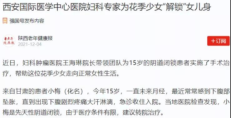 西安國際醫(yī)學(xué)中心醫(yī)院婦科專家為花季少女“解鎖”女兒身