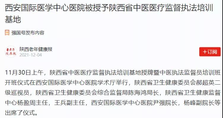 西安國際醫(yī)學(xué)中心醫(yī)院被授予陜西省中醫(yī)醫(yī)療監(jiān)督執(zhí)法培訓(xùn)基地