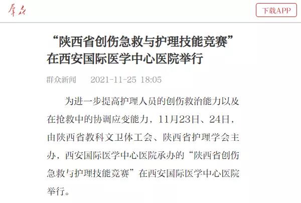 “陜西省創(chuàng)傷急救與護(hù)理技能競賽”在西安國際醫(yī)學(xué)中心醫(yī)院舉行