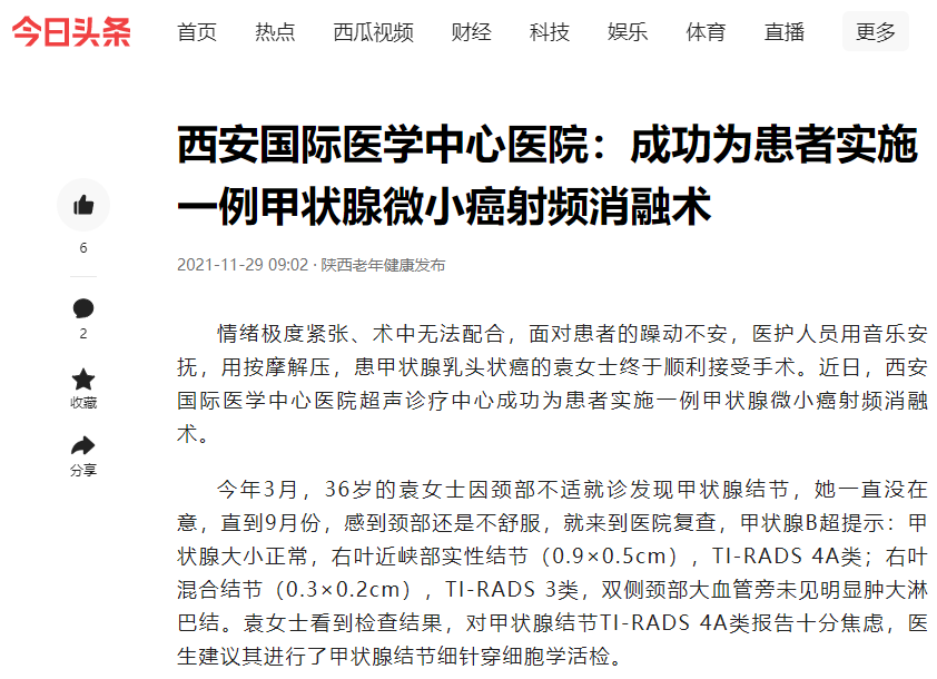 西安國際醫(yī)學(xué)中心醫(yī)院:成功為患者實(shí)施一例甲狀腺微小癌射頻消融術(shù)