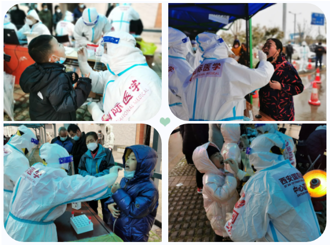 12 月 25 日,西安國(guó)際醫(yī)學(xué)中心醫(yī)院派出 252 名醫(yī)護(hù)人員,奔赴西安市高新區(qū)各個(gè)核酸采集點(diǎn),開(kāi)展核酸檢測(cè)工作。