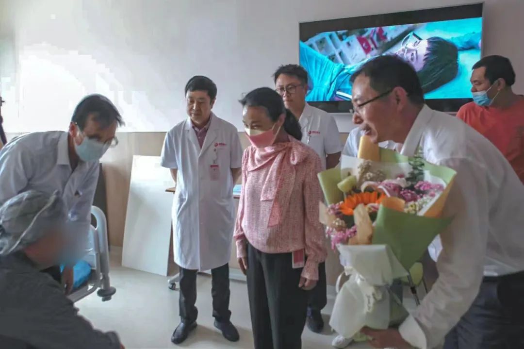 護(hù)士節(jié)前一日李女士出院時,國際醫(yī)學(xué)副董事長王愛萍、腦科醫(yī)院副院長賀世明為她送上鮮花和救助金,希望她早日康復(fù),和抗疫中千千萬萬的白衣天使一樣,繼續(xù)發(fā)光發(fā)熱。