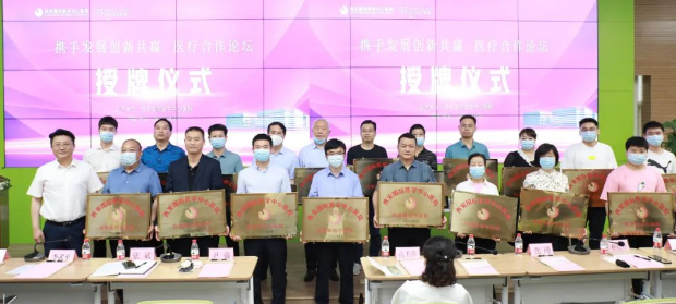 隨后尹強(qiáng)院長(zhǎng)與各機(jī)構(gòu)代表完成合作簽約儀式,李武平副院長(zhǎng)、張斌副院長(zhǎng)為參會(huì)的各家醫(yī)療機(jī)構(gòu)授牌并合影留念。