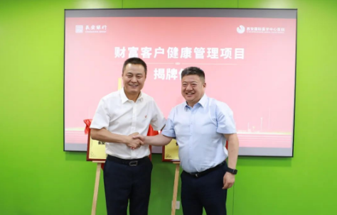 劉瑞軒總裁與王作全行長(zhǎng)共同為“長(zhǎng)安銀行財(cái)富客戶健康管理合作基地”“長(zhǎng)安銀行財(cái)富客戶健康管理VIP室”揭牌。